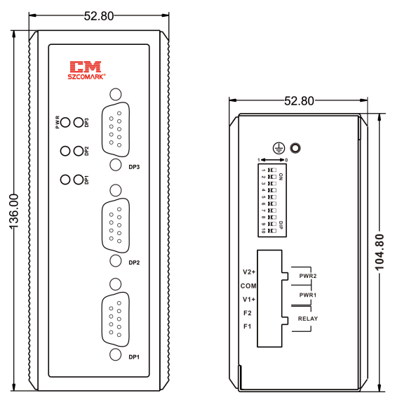 * 安装:35mm导轨安装